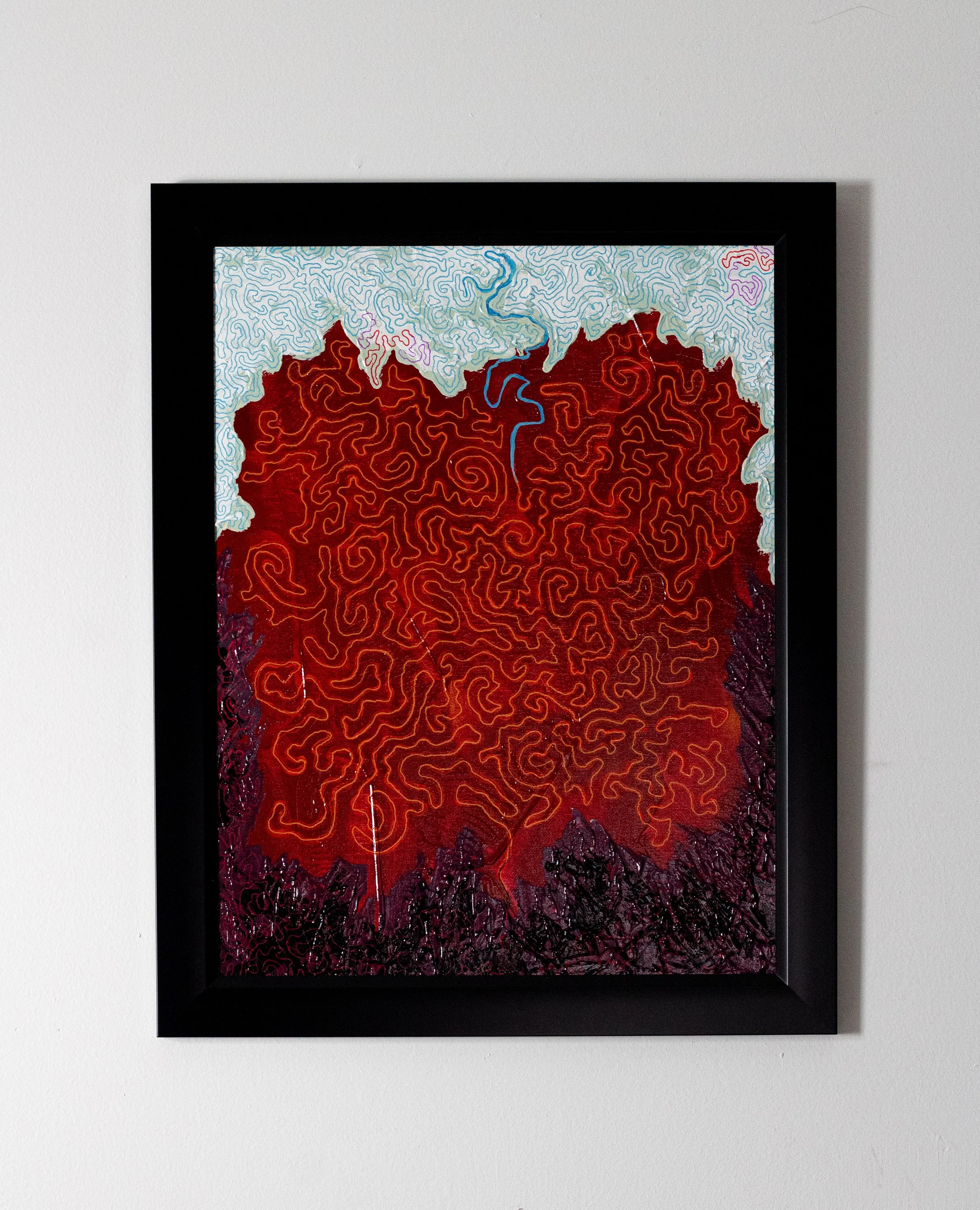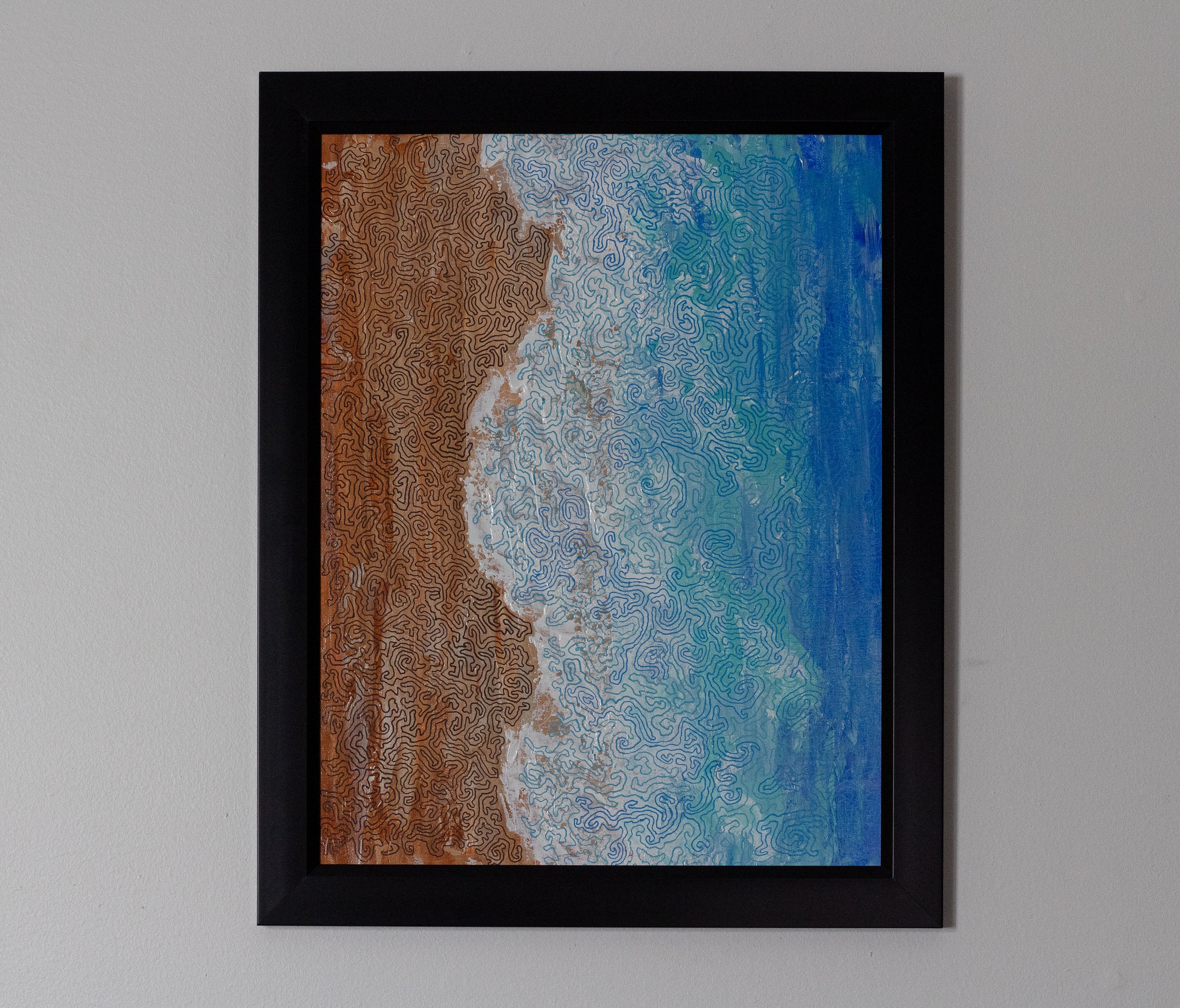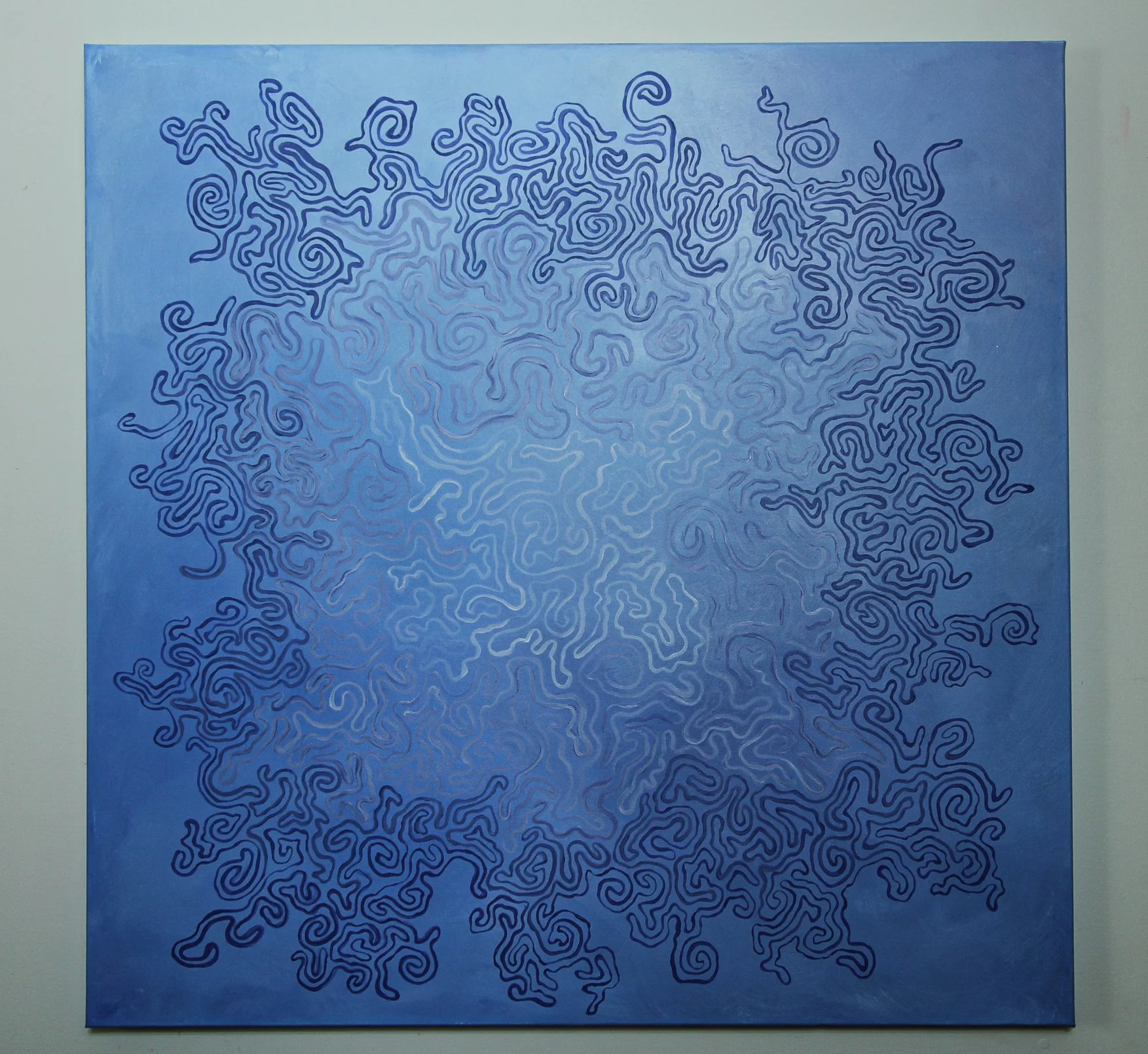 Our mind can choose which pathways to walk in our brain. The more we choose a specific path, the easier it becomes to mentally walk that path. This is the idea behind the maze painting series. We are affected by the chemicals in our brains of course, but it is possible to control those chemicals to a certain extent. We can take prescription drugs or supplements, we can adjust our diets and routines, and we can choose which of our thoughts and moods to dwell in. Happiness may be a result of our circumstances, but joy can be a choice.